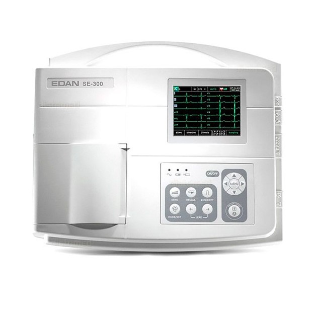 SE-300В компактный 3-канальный аппарат ЭКГ, позволяющий одновременно записывать в память, отображать на встроенном дисплее и распечатывать на бумаге 12 стандартных отведений.